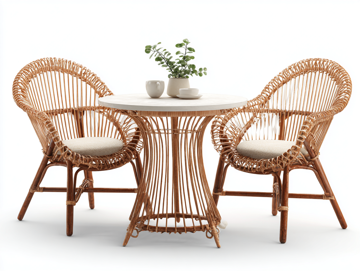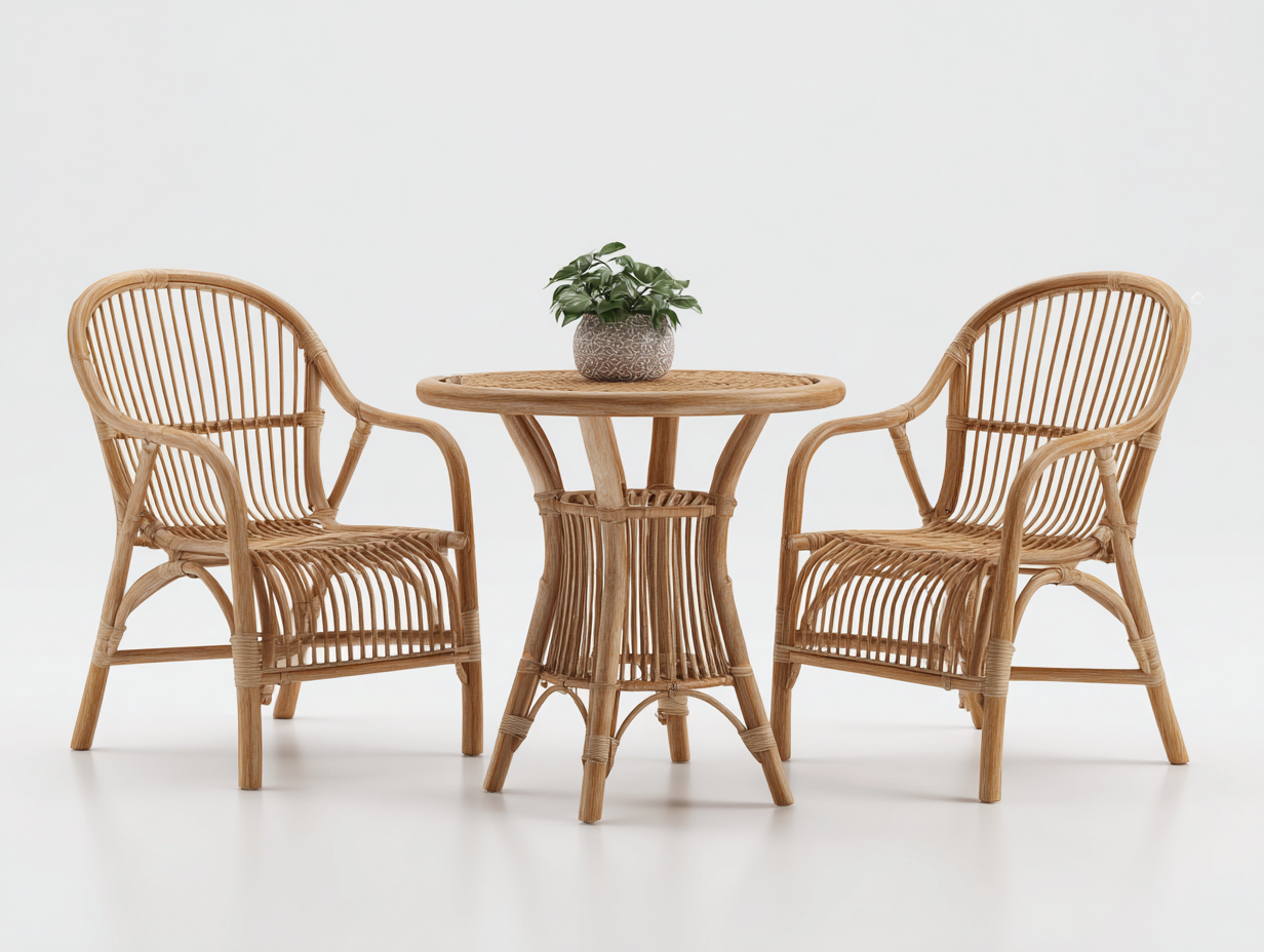 Outdoor Conversation Set Rattan Chairs with Round Table 70x70x75 cm - Natural Rattan - Garden Seating Set