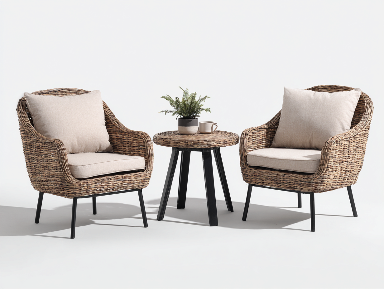 Outdoor Conversation Set Woven Frame 60x62x78 cm - Natural Brown - Outdoor Seating Set