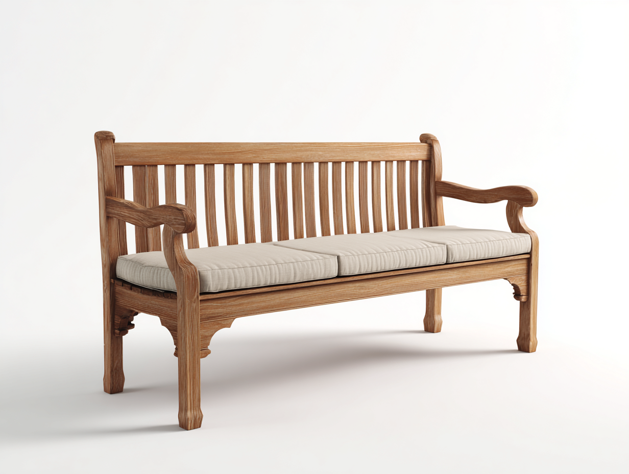 Outdoor Bench solid wood with cushion 135x62x90 cm - natural wood - garden seating design